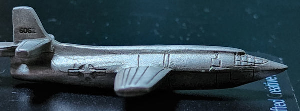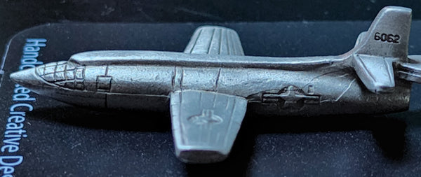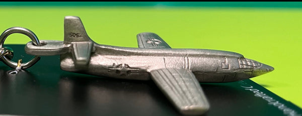 Llavero de peltre con forma de avión Bell X-1 . Mide 4 1/2 pulgadas de largo (incluido el llavero y la cadena).