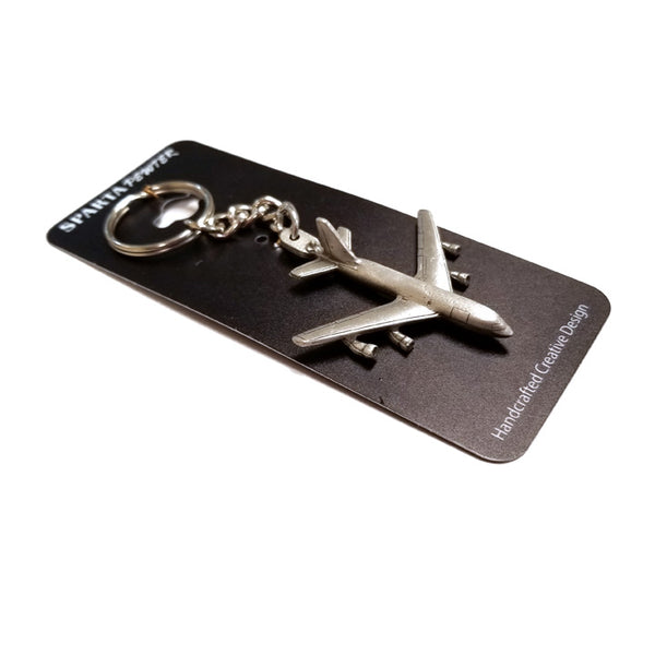 Llavero de peltre del avión Boeing KC-135 Stratotanker. Mide 4 1/2 pulgadas de largo (incluido el llavero y la cadena).