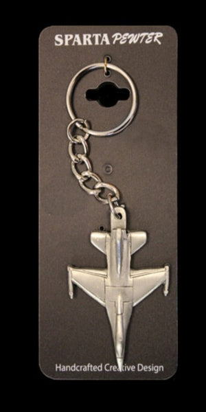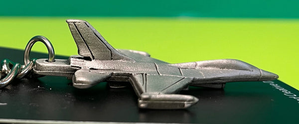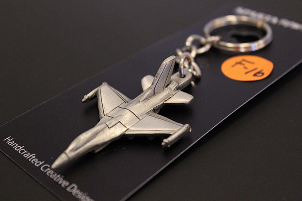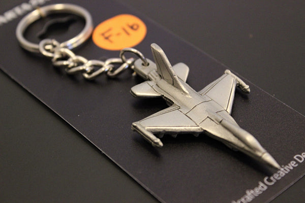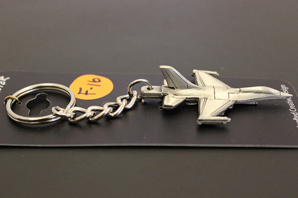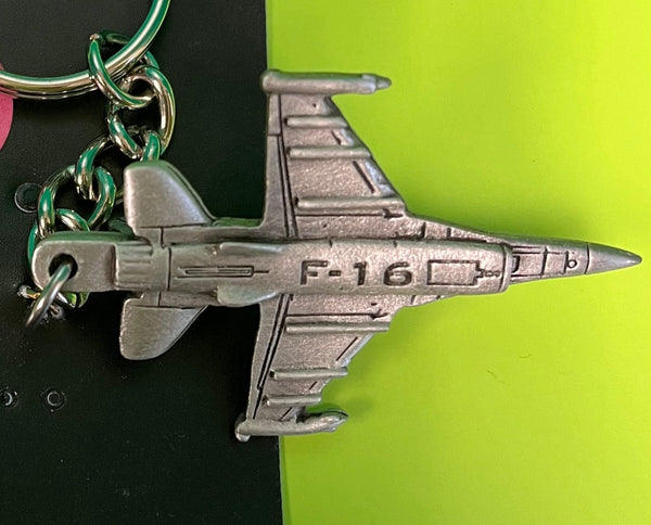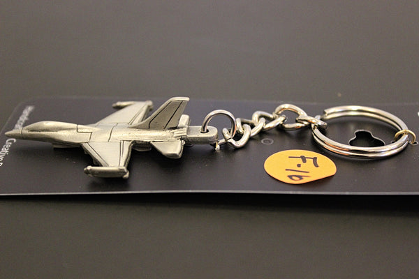 Llavero de peltre con forma de avión F-16 Fighting Falcon de General Dynamics. Mide 3 1/2 pulgadas de largo. (incluye llavero y cadena)