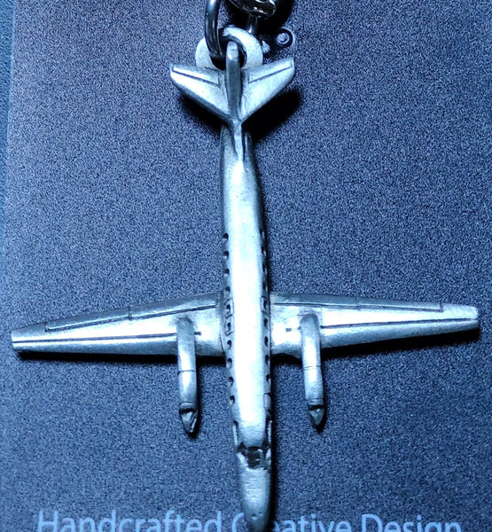 Llavero de peltre con forma de avión Fairchild C-26 Metroliner . Mide 4 1/2 pulgadas de largo (incluido el llavero y la cadena).