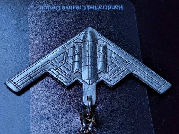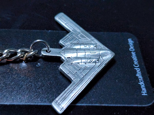Llavero de peltre con el avión bombardero B-2 Spirit de Northrop Grumman. Mide aproximadamente 10 cm de largo (incluido el llavero y la cadena).