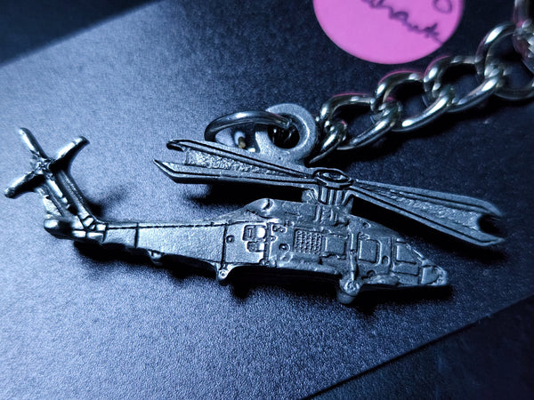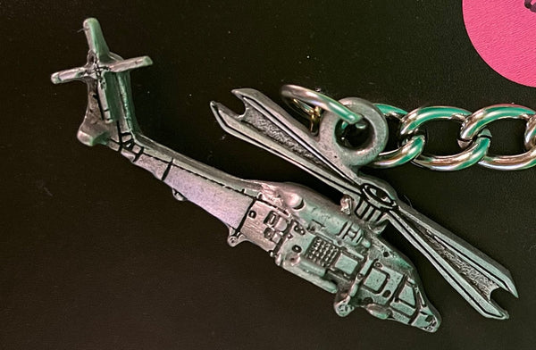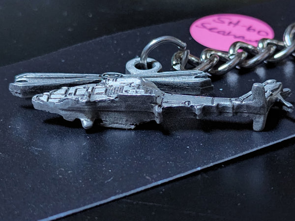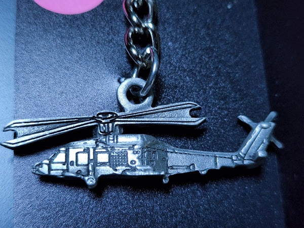 Llavero de peltre del helicóptero Sikorsky SH-60/MH-60 Sea Hawk. Mide 3 1/2 pulgadas de largo (incluido el llavero y la cadena).