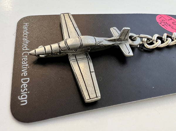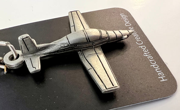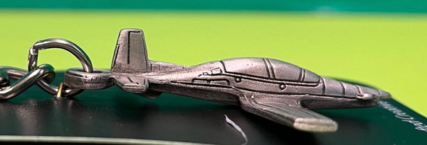 Llavero de peltre con forma de avión de aproximadamente 5" de largo de un Beechcraft T-6 Texan II. Detalle clásico de peltre de la aeronave. Anilla tradicional para llavero para sujetarlo de forma segura a cualquier llave, cartera, bolso, etc.