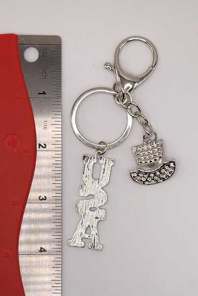 Product Image Llavero de metal con letras patrióticas de EE. UU. y sombrero de copa Bling Bling