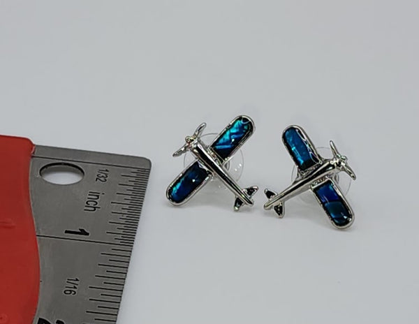 de paua. Avión plateado con detalles de concha de paua. Estilo aro. Los aros miden aproximadamente 1/2 pulgada de ancho y diámetro. También están disponibles collar y pulsera a juego.