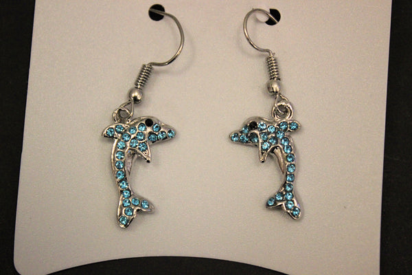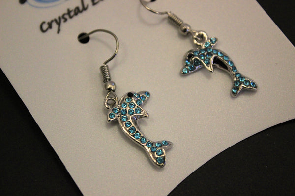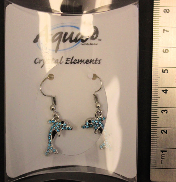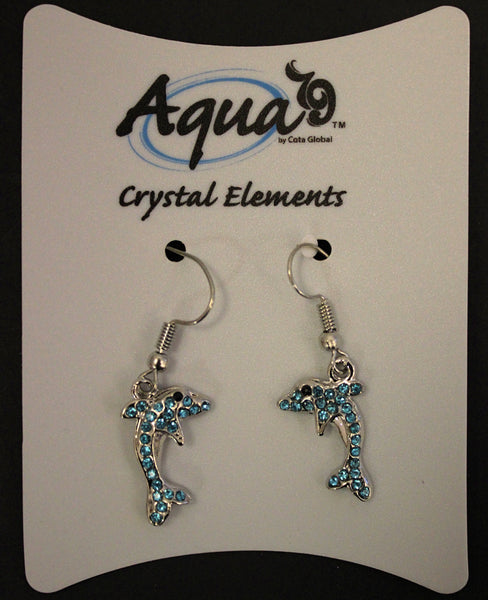 Pendientes colgantes con forma de delfín y elementos de cristal Aqua de Puzzled Inc.