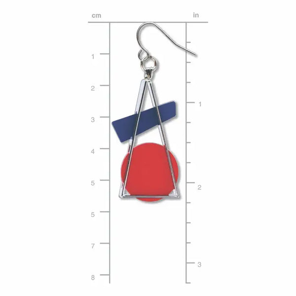 Cuando Wassily Kandinsky comenzó a jugar con formas geométricas haciendo pinturas abstractas, desató una nueva dirección en el arte. Artistas como Alexander Calder y Ellsworth Kelly tomaron estas formas y crearon un mundo completamente nuevo. Estos pendientes se inspiraron en la obra de arte de Kandinsky. Ers2662 Acabado: latón macizo, galvanizado con acabado plateado que no se empaña, acrílico, los alambres para las orejas son hipoalergénicos Dimensiones: cuelga aprox. 1,75 (caja de regalo con tarjeta de procedencia).
