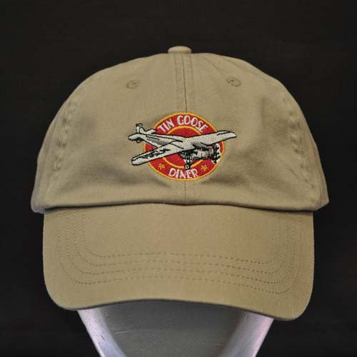 Gorra de béisbol de perfil bajo y tamaño ajustable con el logotipo de Tin Goose Diner. Color: caqui o negro