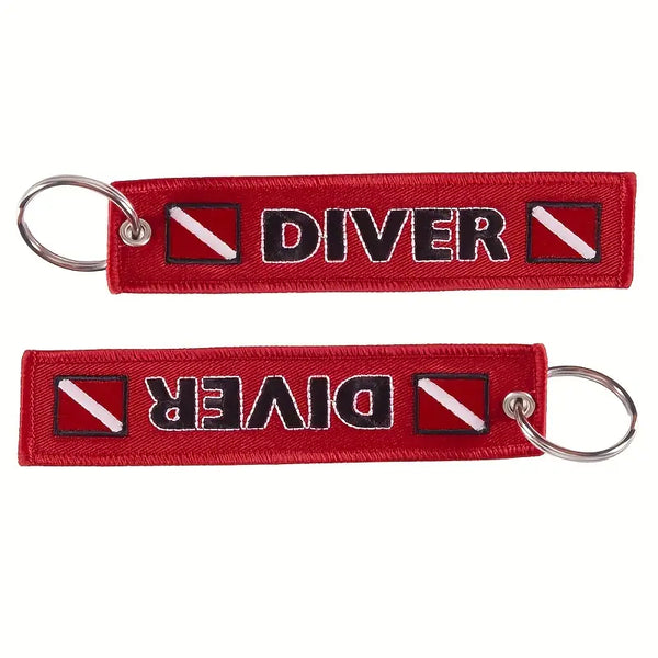 El llavero mide 5" de largo por 1" de ancho con un anillo de llavero tradicional para sujetarlo de forma segura a cualquier llave, cartera, bolso, etc. Fondo rojo con letras negras.