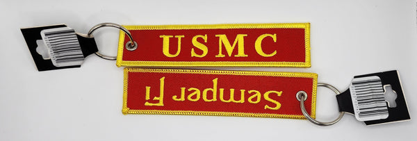 Este llavero bordado presenta la fuente y el esquema de colores oficiales del Cuerpo de Marines de EE. UU. bordados en un material rígido, duradero y con borde de merrow, y viene con un anillo de acero grande para sujetar fácilmente todo tipo de llaves.