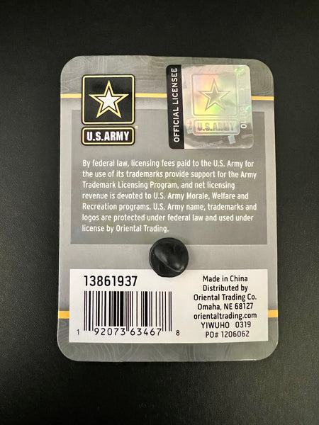 Este es un pin esmaltado con licencia oficial del ejército de EE. UU. Este artículo mide 1" de largo por 1,5" de alto.