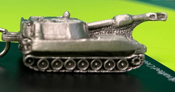 Llavero de peltre de aproximadamente 5" de largo de un tanque M109 Paladin. Detalle clásico de peltre de la aeronave. Anilla tradicional para llavero para sujetar de forma segura a cualquier llave, cartera, bolso, etc.