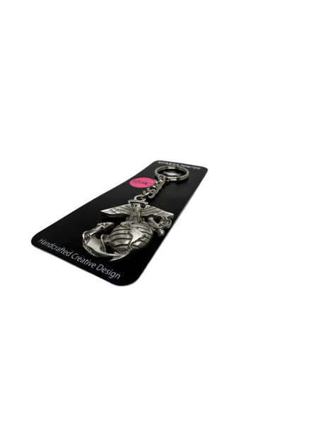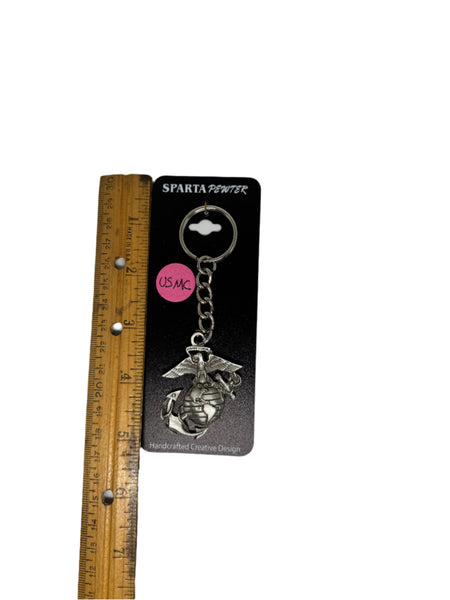 El llavero de peltre con escudo marino mide aproximadamente 5" de largo. El escudo en 3D mide aproximadamente 2,5" de largo. Anilla tradicional para llavero que se sujeta de forma segura a cualquier llave, cartera, bolso, etc.