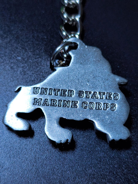 Llavero de peltre con la mascota bulldog del Cuerpo de Marines de EE. UU. (USMC)