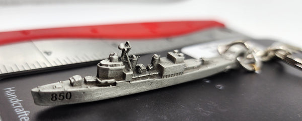 Llavero de peltre en 3D del destructor de la clase Gearing DD-850 del USS Joseph P. Kennedy, Jr.