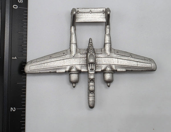 WWII Northrop P-61 Black Widow fighter airplane pewter magnet.  Measures approximately 2 1/2 inches long and 2 1/2 inches in length.