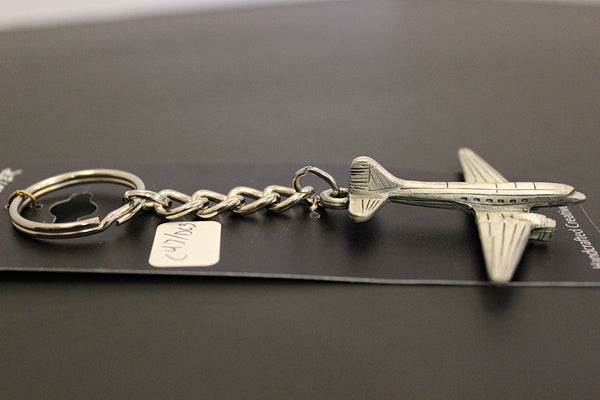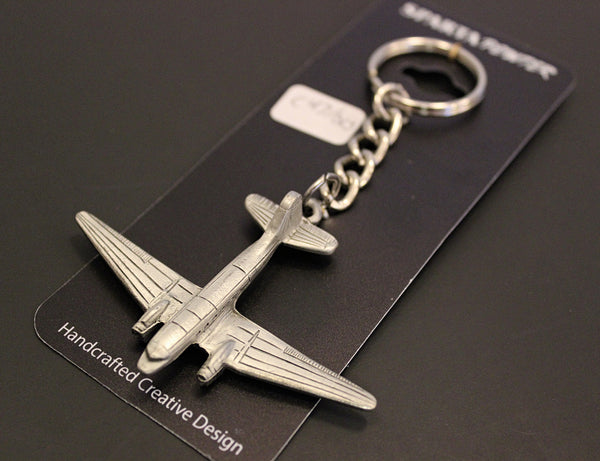 Llavero de peltre con forma de avión Douglas C-47 Skytrain/DC3. Mide 3 1/2 pulgadas de largo. (incluye llavero y cadena)