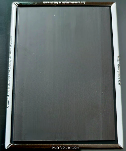 Ilustración del morro del B-25 "Georgie's Gal" con bombas de misión. Fondo marrón con la ilustración del morro y las bombas de misión. Imán de alta calidad de 2 1/2 pulgadas de ancho por 3 1/2 pulgadas de alto.