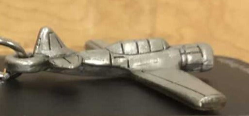 Llavero de peltre con el avión norteamericano AT-6 Texan/Canadian Harvard de la Segunda Guerra Mundial. Mide 4 1/2 pulgadas de largo (incluido el llavero y la cadena)